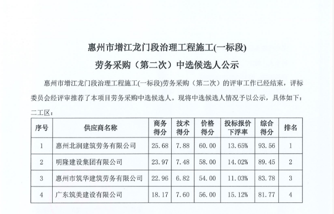 惠州市水電建筑工程有限公司勞務供應商庫擴庫評審結果公示……